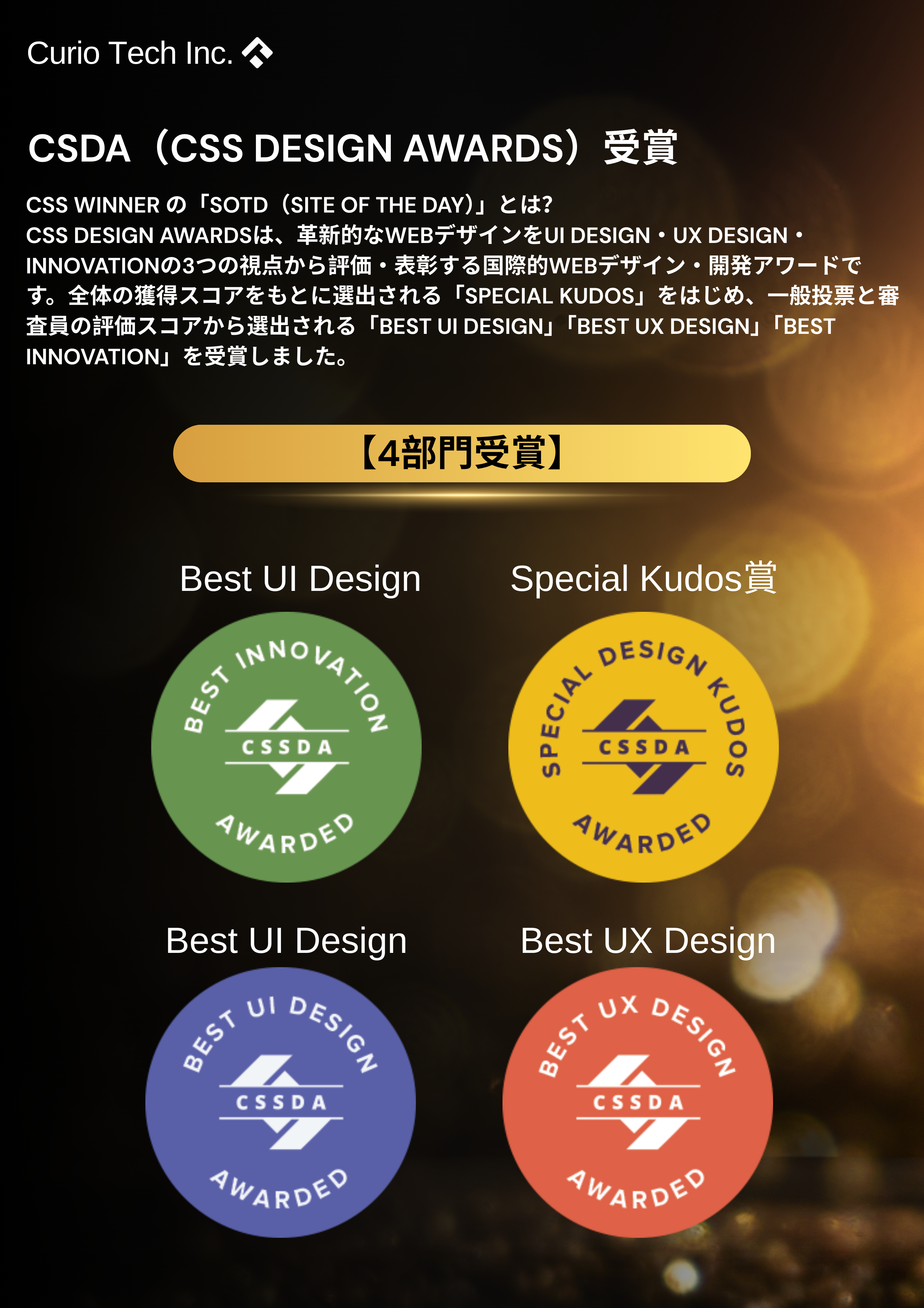 このたび、株式会社CurioTechのコーポレートサイトが、国際的なWebデザインアワードを受賞いたしました。