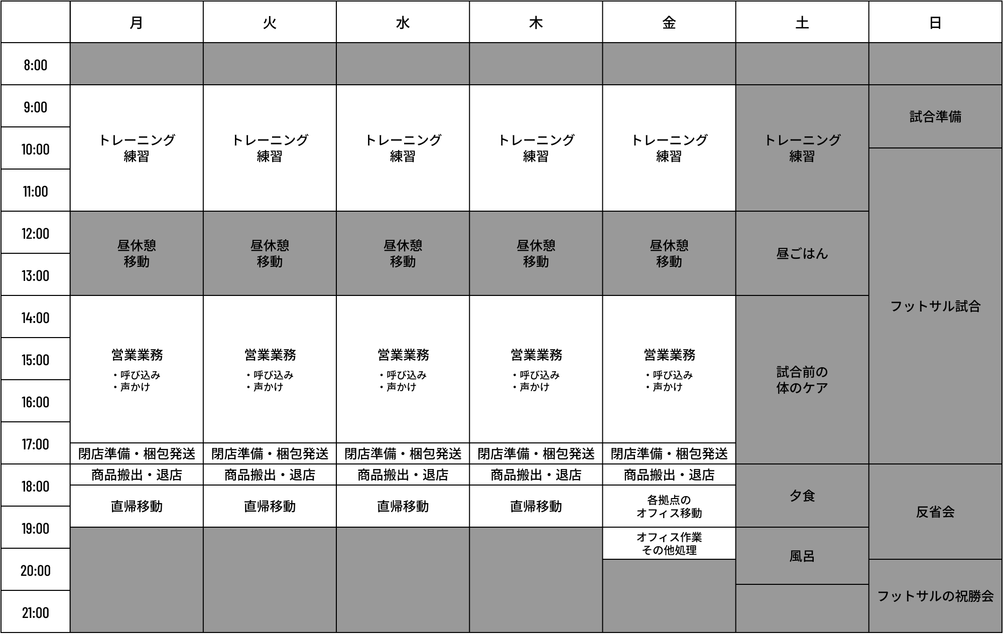 ある1週間のスケジュール