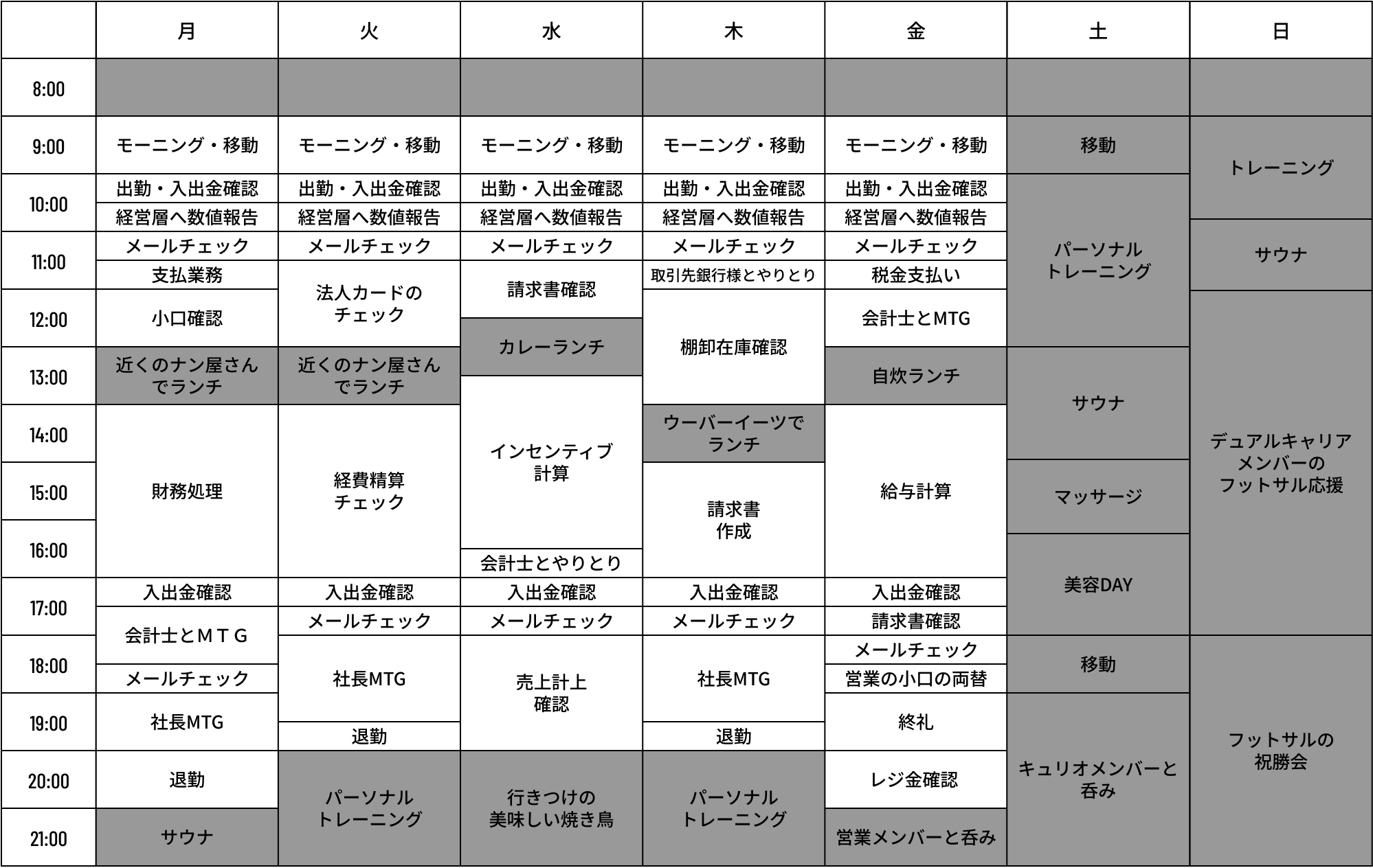 経験・適性に応じた仕事をお願いしていきます。社長や役員と距離が近く、スピード感ある意思決定に携われるため、数字の管理だけでなく、将来的には事業計画や財務戦略に関与できるポジションです。