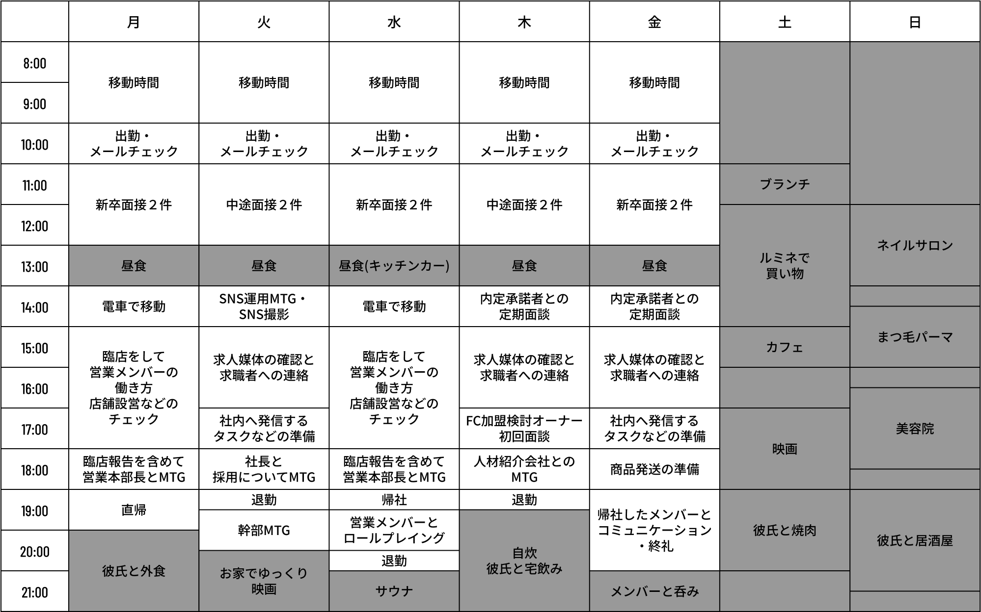 ある1週間のスケジュール